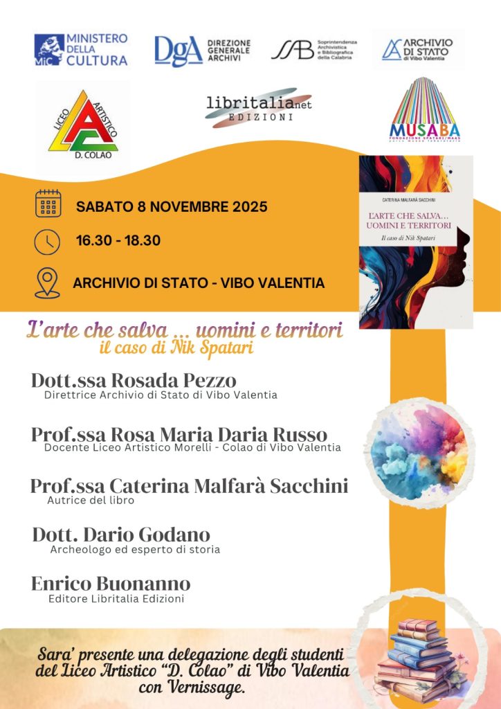 In occasione della Giornata Internazionale dei diritti delle persone con disabilità, l’Archivio di Stato di Vibo Valentia è lieto di invitaVi all’evento culturale avente ad oggetto la presentazione del libro dal titolo “L’arte che salva…uomini e territori, il caso Nik Spatari” della scrittrice prof.
